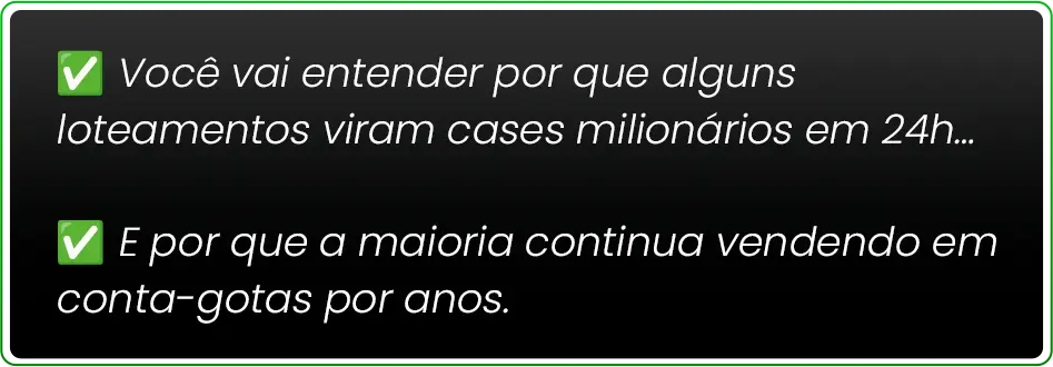 Que atuam no mercado imobiliário e buscam estratégias reais para lançar seus loteamentos com mais segurança, velocidade e lucratividade.
